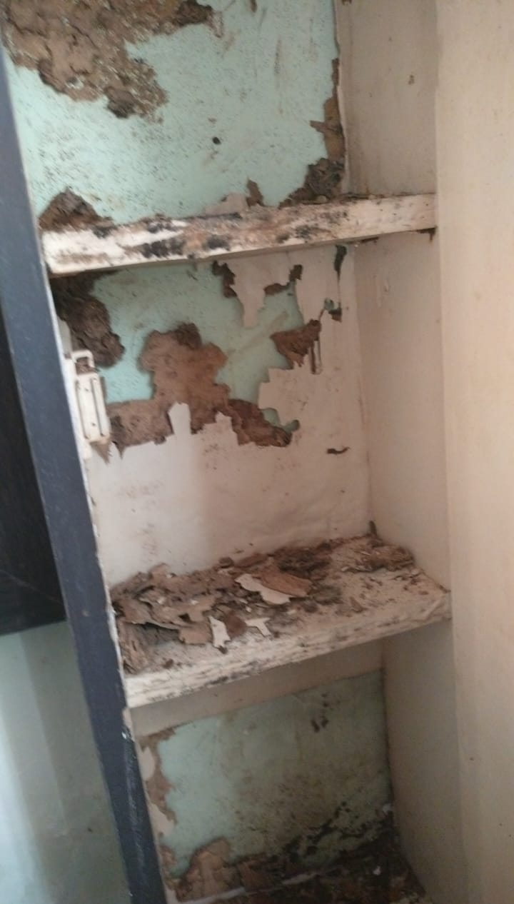 Termites damaged wooden cupboard Antitermite Treatment done for the Best result Pest Control Service Near me Pest Control